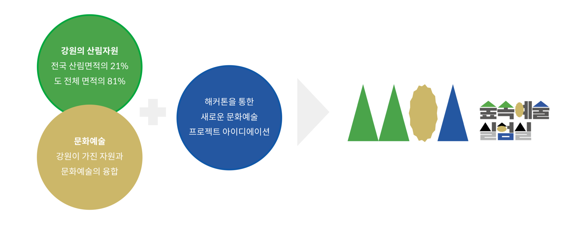 2019 숲속예술실험실 해커톤: 강원의 숲, 문화예술을 만나다강원문화재단 숲속예술실험실은 강원의 산림자원을 기반으로 다양한 주제와 영역의 문화예술교육의 아이디어를 만들고 실행까지 해볼 수 있는 최초의 강원도형 문화예술 해커톤 프로그램입니다. 숲속예술실험실의 경우, 국내 최초로 실험하는 산림자원 - 문화예술 - 해커톤 형식의 프로그램으로 산림과 문화예술, 교